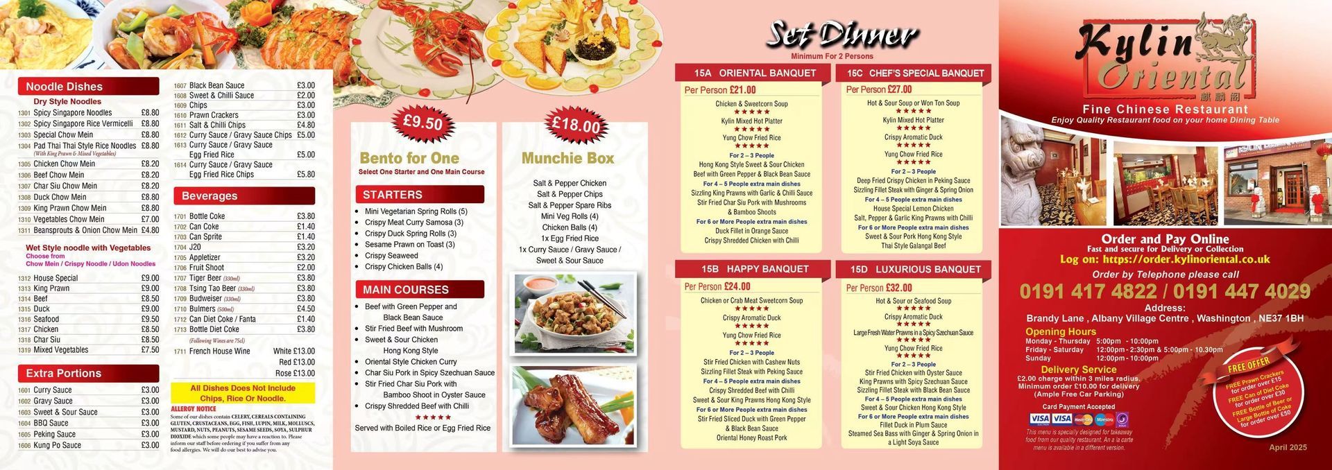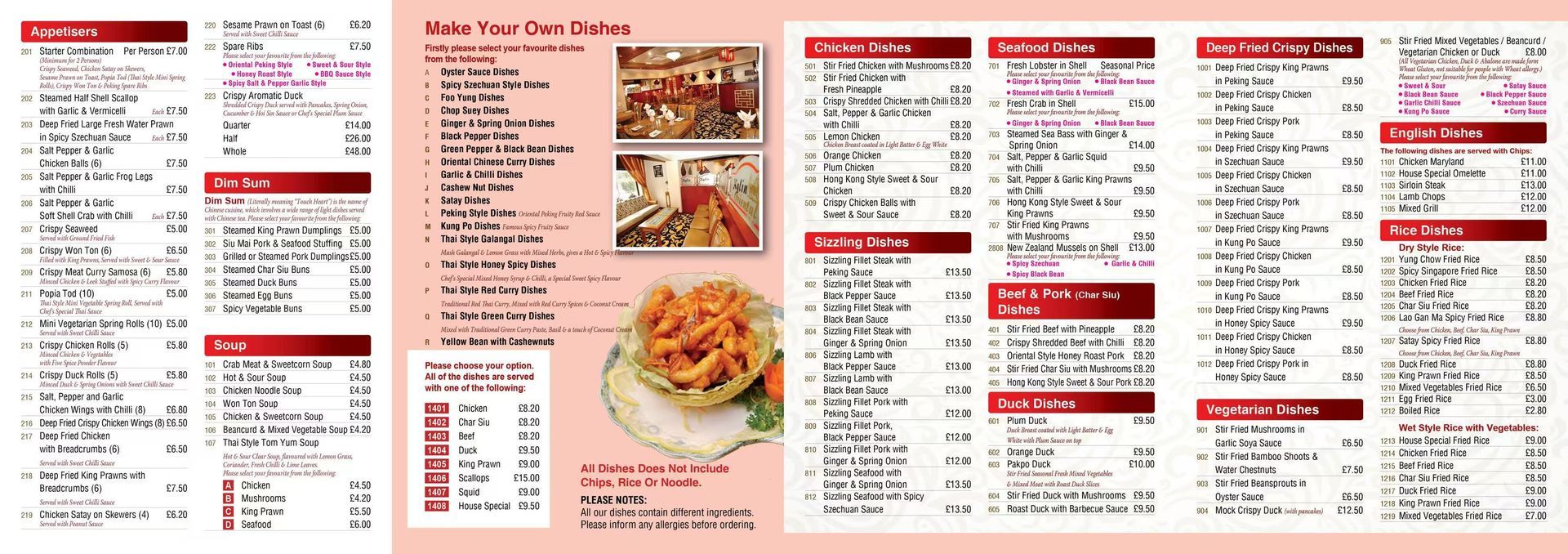 Our range of menus includes all the favorites, from Chop Suey, to Cantonese, to other specialities. So if it's lunch, a banquet dinner, or a quick takeaway, we have just the Oriental fare you are looking for.